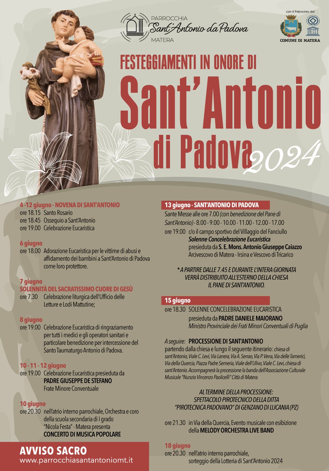 Che sia ancora una volta un evento dello Spirito, di Grazia, di fraternità tra noi devoti del Santo e tutta la comunità del Rione Lanera di Matera.